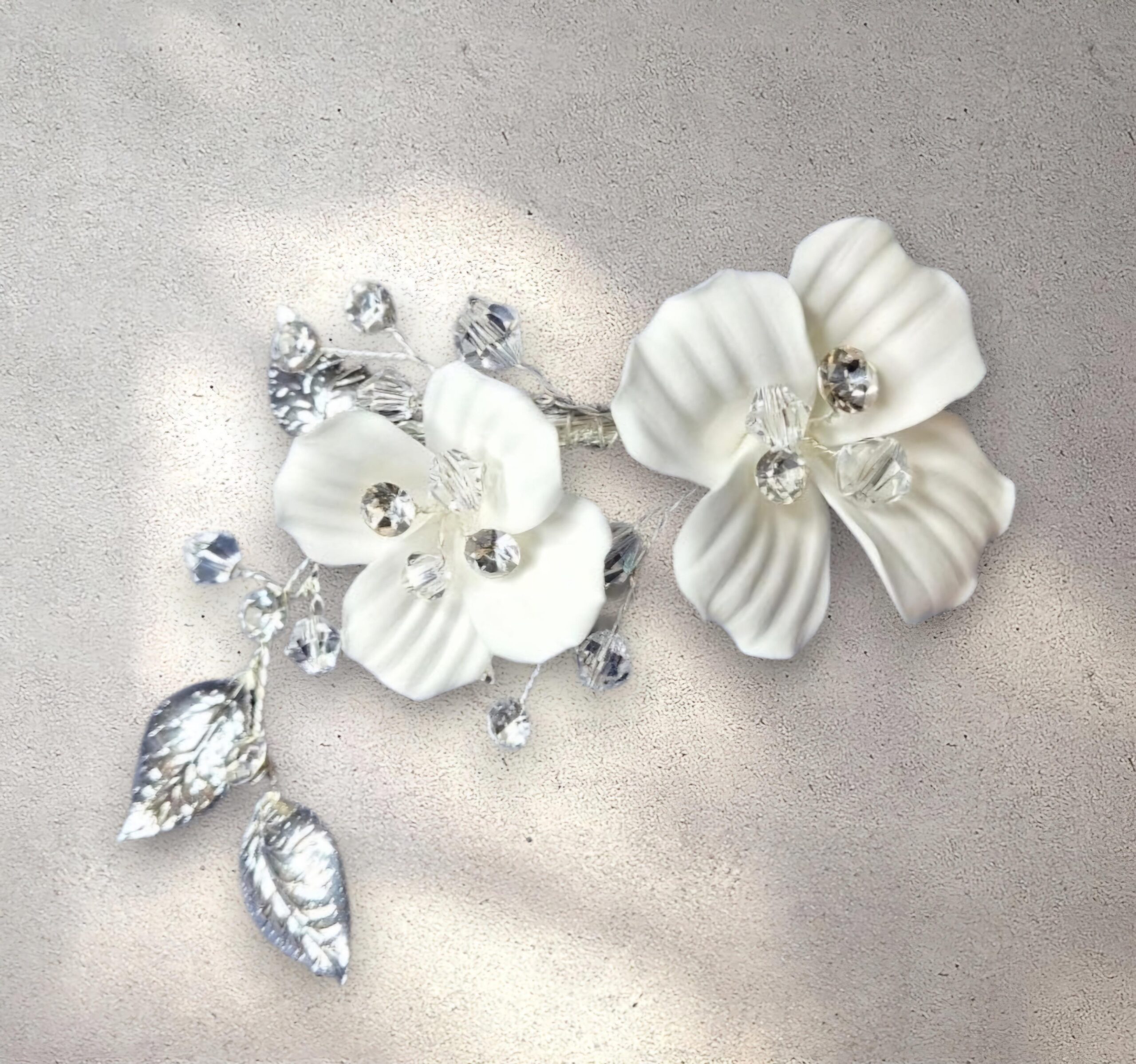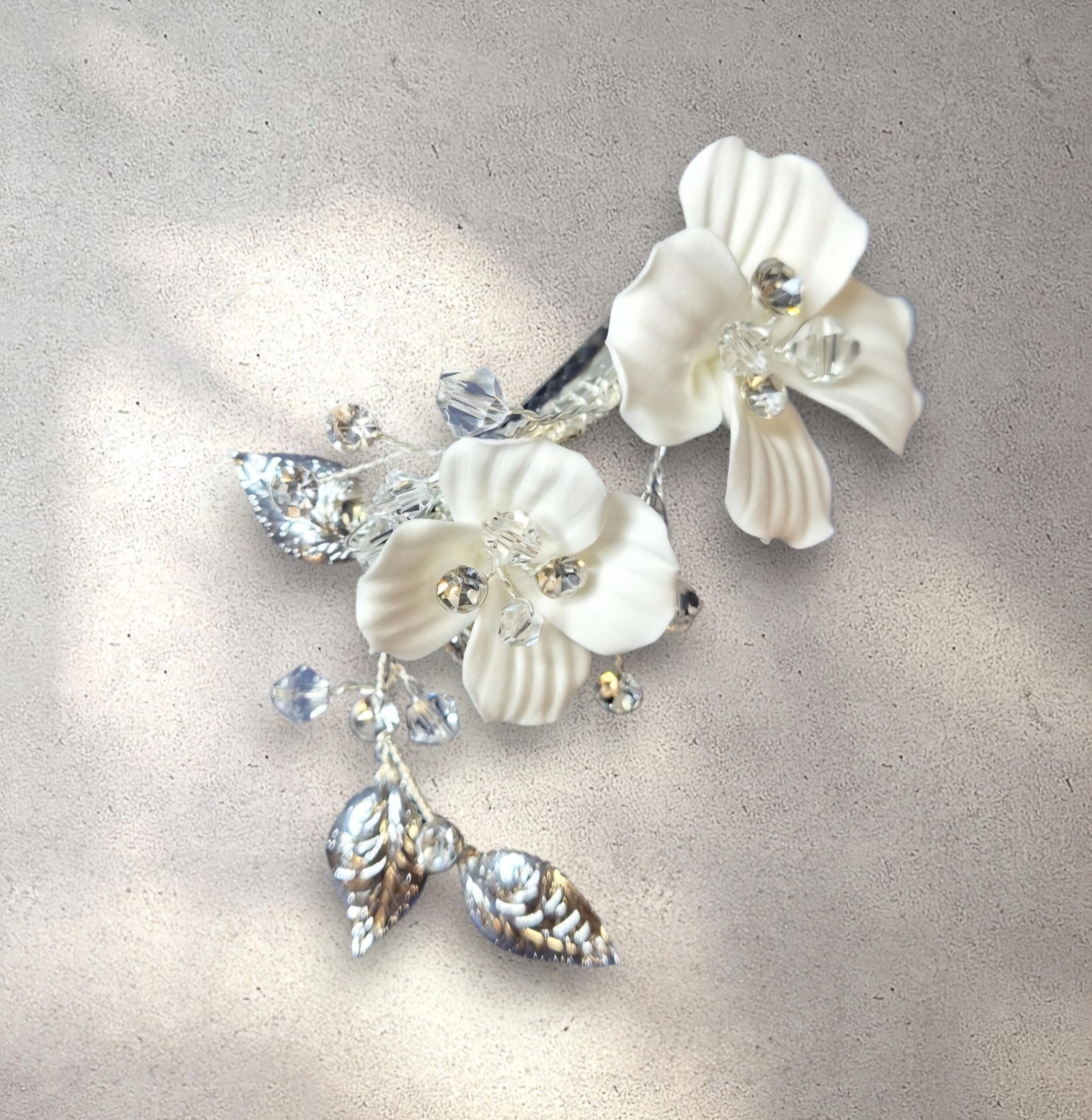 Beautiful floral design, delicate and small, finished with a crocodile style clip.