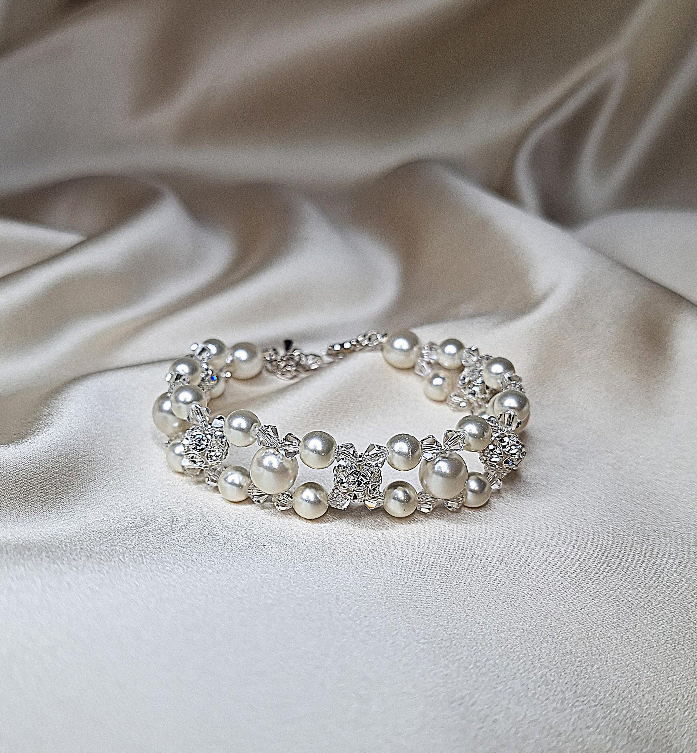Ivory Pearl and Crystal Bracelet with silver Disco Balls