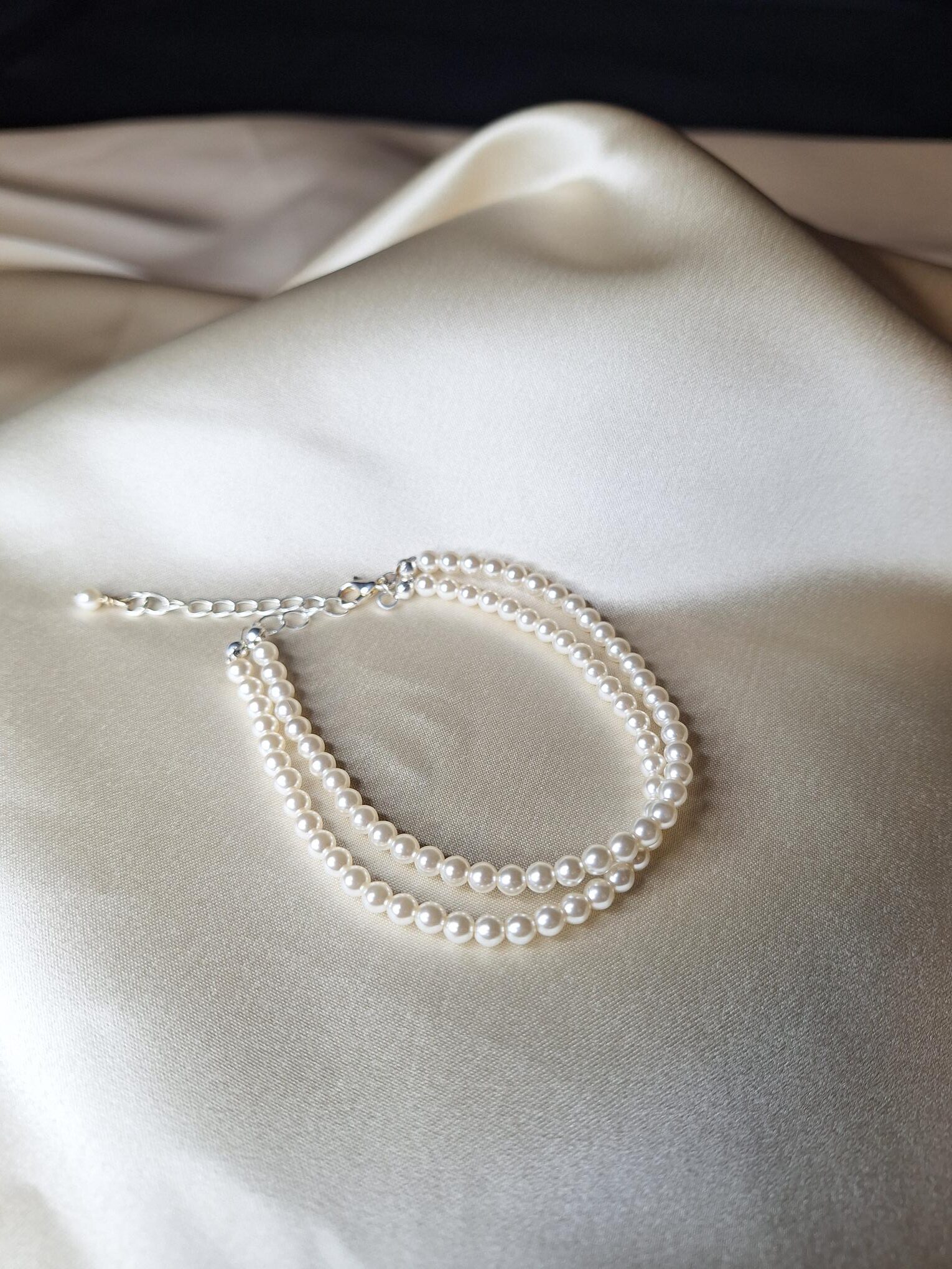 Stunning ivory pearl bracelet, this has a double band but still keeps that delicate look.
